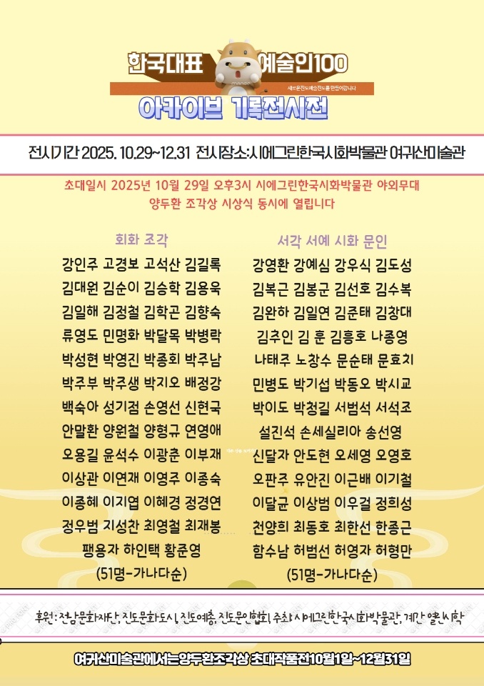 Çѱ¹´ëÇ¥¿¹¼úÀÎ100¸í¾ÆÄ«À̺ê±â·ÏÀü½ÃÀü°ú ¾çµÎȯÁ¶°¢»ó°ø¸ðÀÛǰ, ±×¸®°í Àι®¾ÆÄ«µ¥¹Ìȸ¿øÀÇ ½ÃÈÀüÀÌ ¿·ÁÀÖ½À´Ï´Ù. 10/29ÀÏ ¿ÀÈÄ3½Ã¿¡